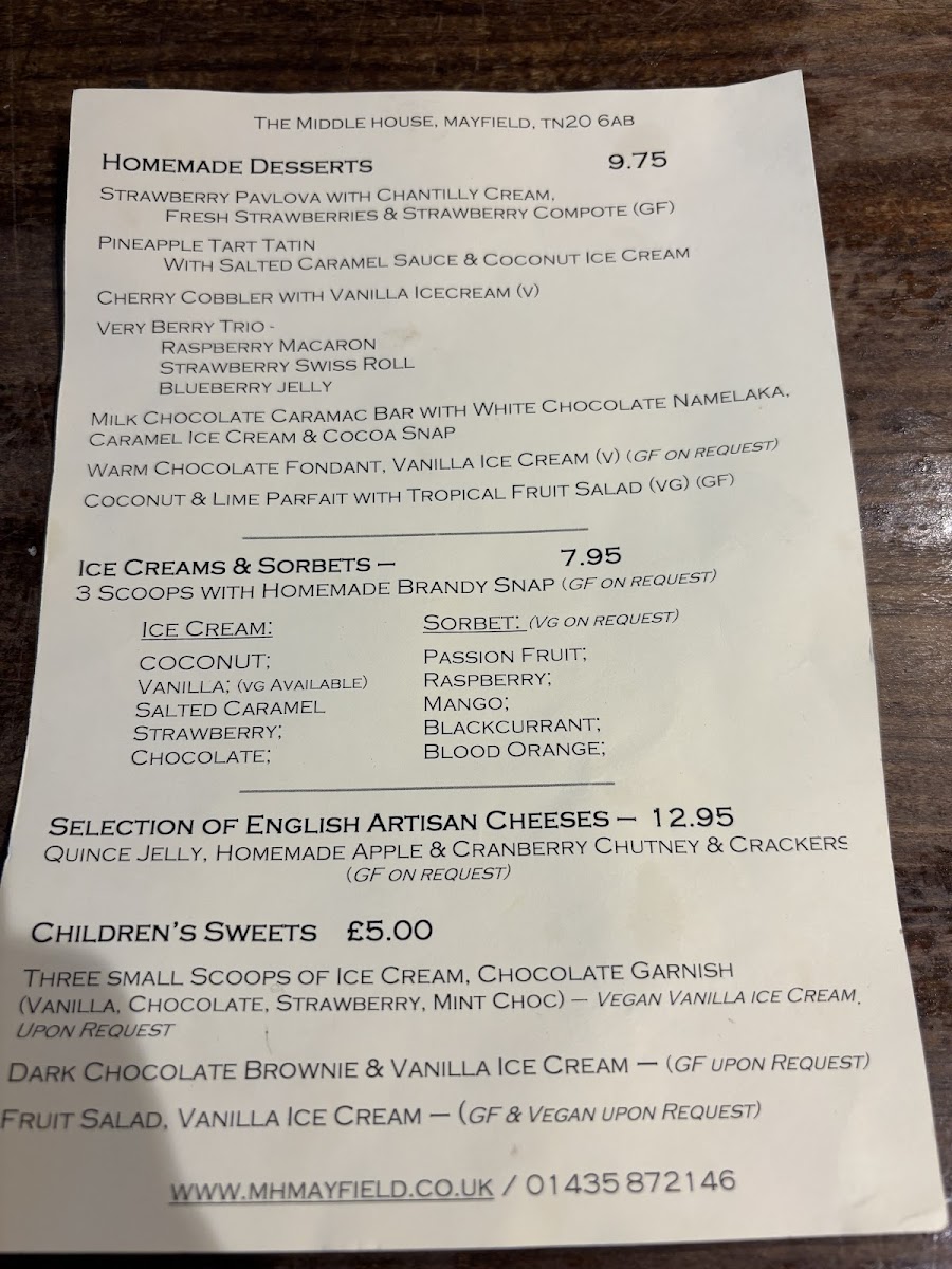 Welcome to The Middle House, a delightful culinary destination nestled in the heart of Mayfield, UK. Renowned for its exceptional dining experience, the restaurant boasts a varied menu that caters to diverse palates. Highlights include indulgent homemade desserts like the Coconut & Lime Parfait paired with a refreshing Tropical Fruit Salad, and the rich Warm Chocolate Fondant served with creamy Vanilla Ice Cream.